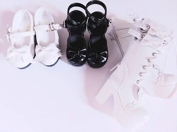Who doesn't love shoes? Doll shoes are just so tiny and adorable! Since Hitomi has interchangeable feet, she can have high heeled feet or magnetic flats. Both sets of feet have different measurements, which means that I have even more shoe options to choose from! The tea party style shoes are from BambiCrony and are positively excellent! The material is of an extremely high quality and resembles actually tea parties that I own. I plan to order more tea party shoes for Hitomi in additional colors. The black pair of tea party high heels are a decent quality and a pair I purchased rather inexpensively from eBay. Lastly, Hitomi's lolita style boots came from, you guessed it, Alice Collections! The boots are extremely well made and the details, particularly the PVC lace, are positively adorable. The best part about these boots is that Hitomi is able to wear them with either feet set attached!