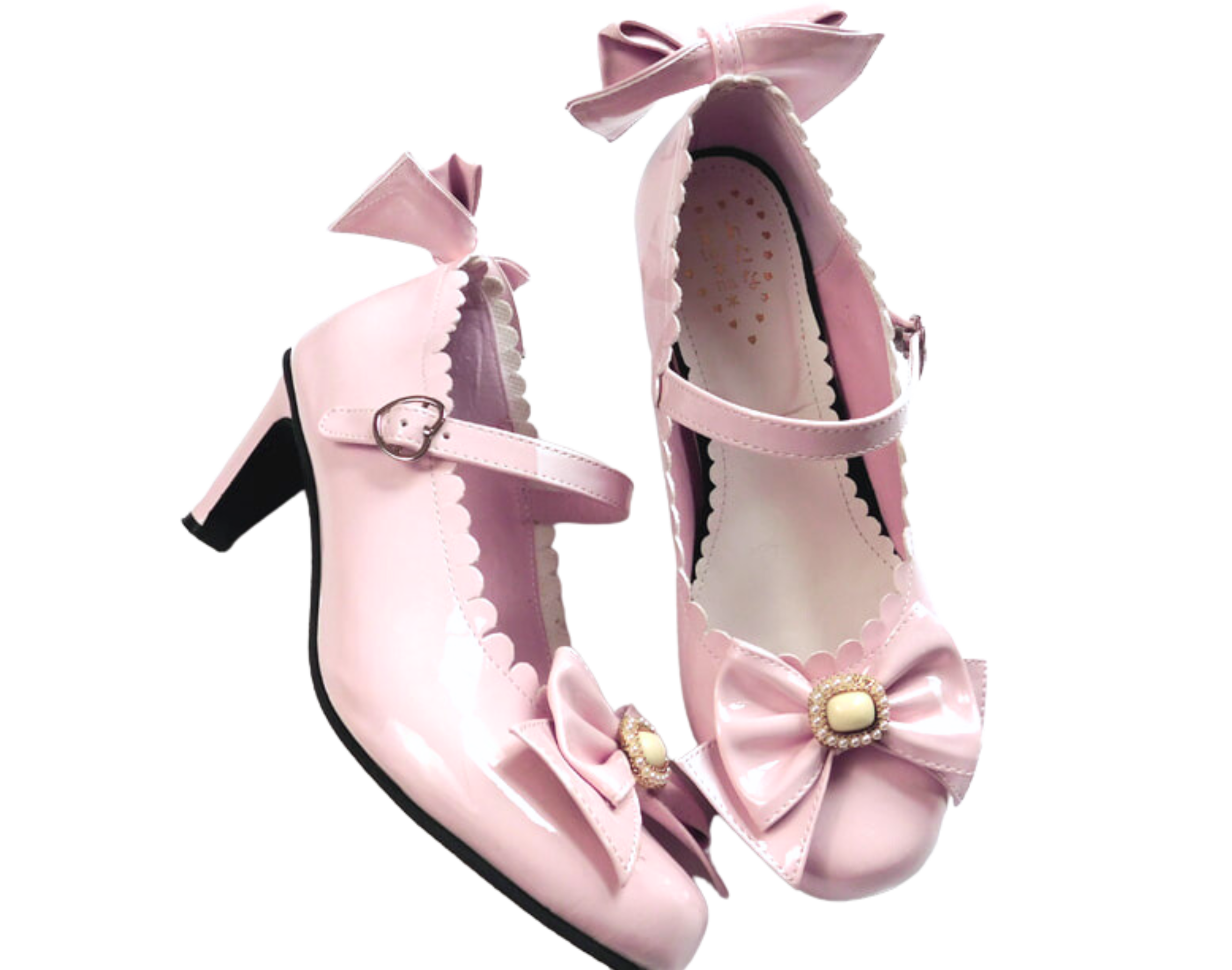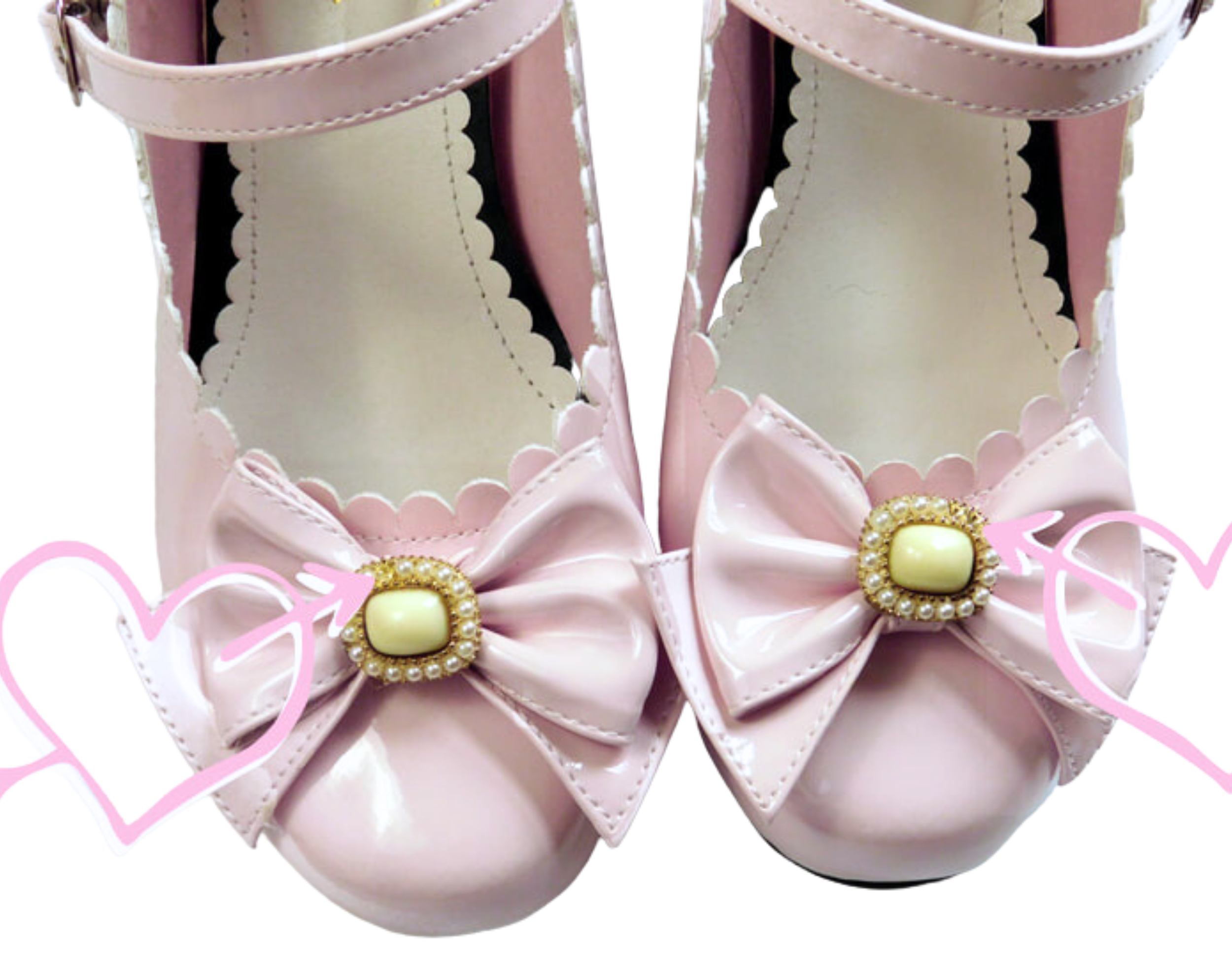 When I opened the shoes, I was dismayed to see that the buckles on the front of the bow are missing pearl beads and one of the outer golden frame is tarnishing. It was difficult to see from the proof photos, but they did arrive to the shopping service this way. Nothing had come loose in the shipment. Thankfully, I can fix the missing pearls myself. Unfortunately, I cannot do anything about the tarnished gold frame. If anyone has any suggestions, I would absolutely love to hear them!